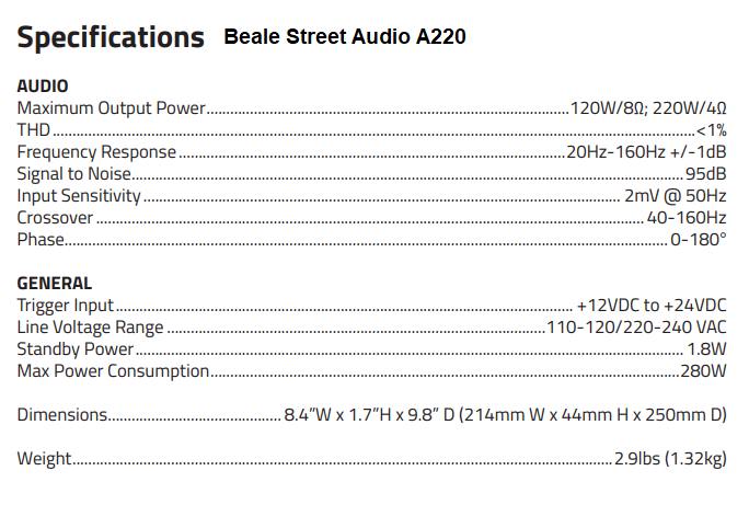 Beale Street A220 Class 220W Sub Amplifier